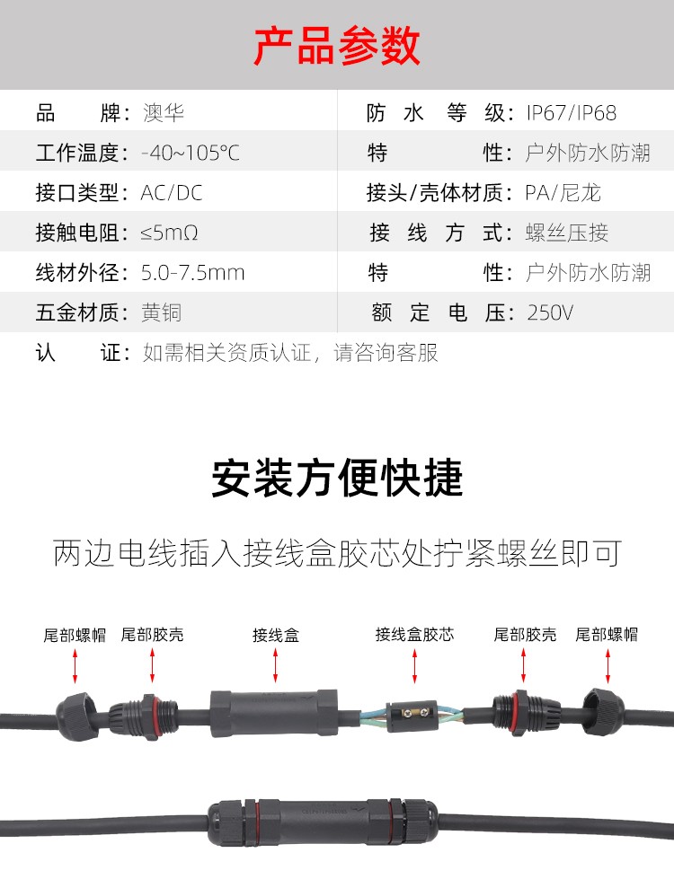 AHUA澳華公司專業(yè)生產(chǎn)LED防水插頭連接器、路燈模組分線盒、工控防水公母接頭、光伏航空插頭、新能源防水電源連接線、植物生長燈連接線、畜牧養(yǎng)殖連接線、汽車線束。工廠自有模具制造、電線電纜押出、大型注塑、五金制造,雙生產(chǎn)基地,可來圖來樣個性化定制,國家高新技術(shù)規(guī)模企業(yè)!