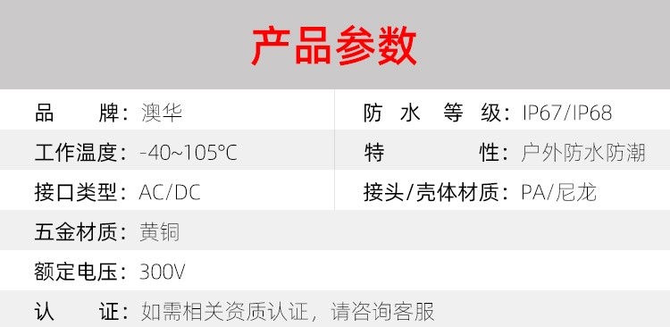 AHUA澳華工業(yè)耦合器防水接頭M16防水連接線 太陽能路燈拆裝式模組