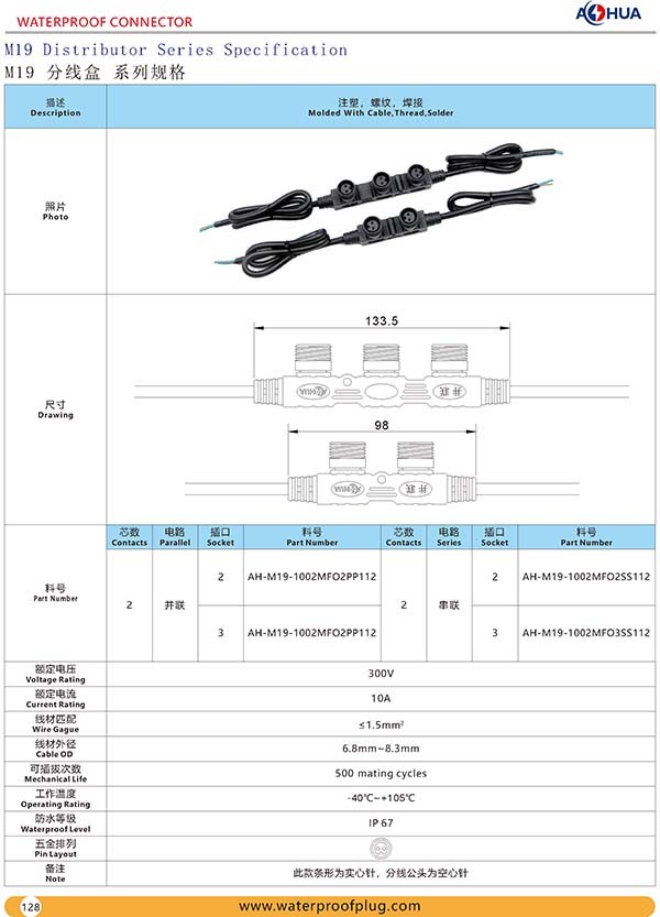 AHUA澳華公司專業(yè)生產(chǎn)LED防水插頭連接器、路燈模組分線盒、工控防水公母接頭、光伏航空插頭、新能源防水電源連接線、植物生長(zhǎng)燈連接線、畜牧養(yǎng)殖連接線、汽車線束。工廠自有模具制造、電線電纜押出、大型注塑、五金制造,雙生產(chǎn)基地,可來(lái)圖來(lái)樣個(gè)性化定制,國(guó)家高新技術(shù)規(guī)模企業(yè)!