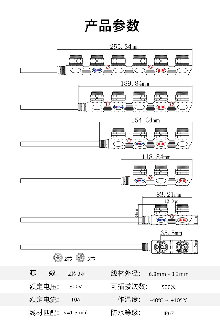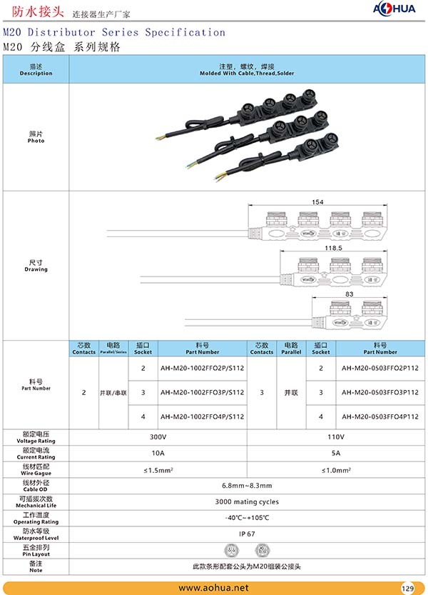 AHUA澳華公司專業(yè)生產(chǎn)LED防水插頭連接器、路燈模組分線盒、工控防水公母接頭、光伏航空插頭、新能源防水電源連接線、植物生長燈連接線、畜牧養(yǎng)殖連接線、汽車線束。工廠自有模具制造、電線電纜押出、大型注塑、五金制造,雙生產(chǎn)基地,可來圖來樣個性化定制,國家高新技術(shù)規(guī)模企業(yè)!