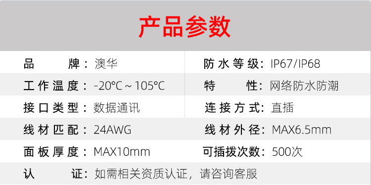 AHUA澳華公司專業(yè)生產(chǎn)LED防水插頭連接器、路燈模組分線盒、工控防水公母接頭、光伏航空插頭、新能源防水電源連接線、植物生長燈連接線、畜牧養(yǎng)殖連接線、汽車線束。工廠自有模具制造、電線電纜押出、大型注塑、五金制造,雙生產(chǎn)基地,可來圖來樣個性化定制,國家高新技術(shù)規(guī)模企業(yè)!