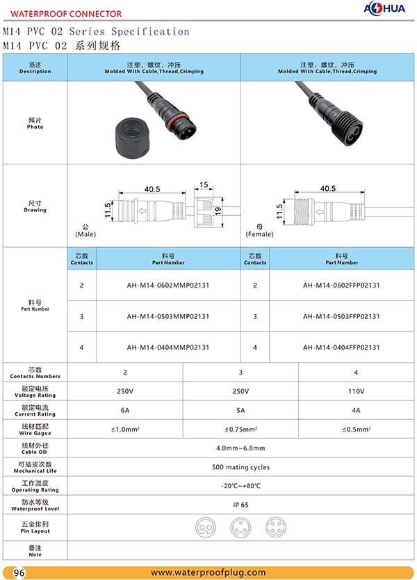 AHUA澳華燈帶線M14PVC防水插頭防水連接器農(nóng)業(yè)機械接頭