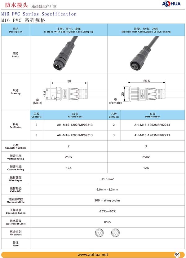 AHUA澳華公司專業(yè)生產LED防水插頭連接器、路燈模組分線盒、工控防水公母接頭、光伏航空插頭、新能源防水電源連接線、植物生長燈連接線、畜牧養(yǎng)殖連接線、汽車線束。工廠自有模具制造、電線電纜押出、大型注塑、五金制造,雙生產基地,可來圖來樣個性化定制,國家高新技術規(guī)模企業(yè)!