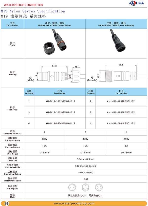 AHUA澳華M19洗墻燈電纜防水航空插頭燈飾設(shè)備防水連接器